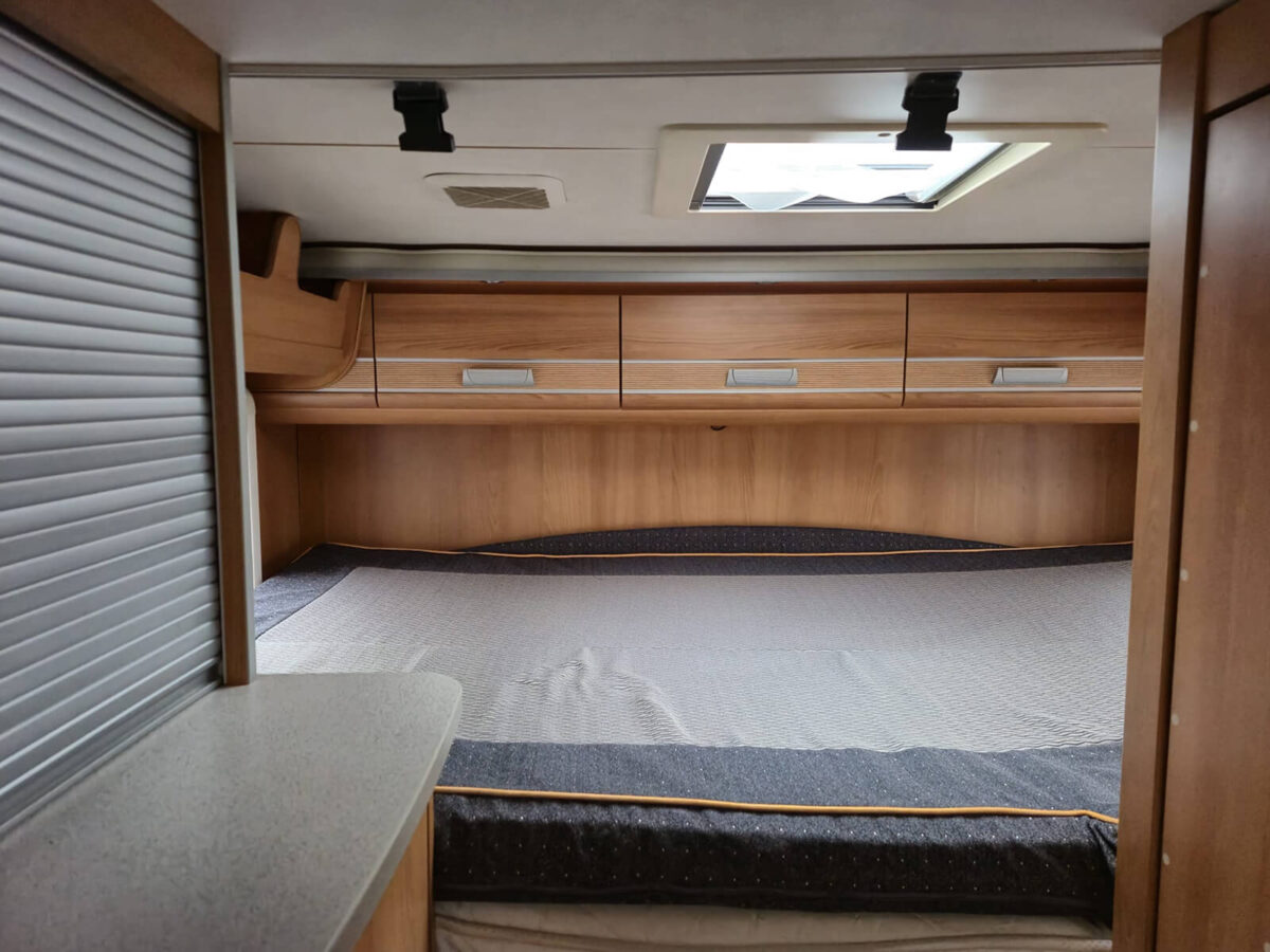 Il riposo è sacro, anche in viaggio. Il camper offre due comodi letti matrimoniali, uno fisso posteriore e uno basculante anteriore, ideali per una famiglia o una coppia. Materassi confortevoli e spazi ben distribuiti assicurano sonni tranquilli ovunque ti trovi.