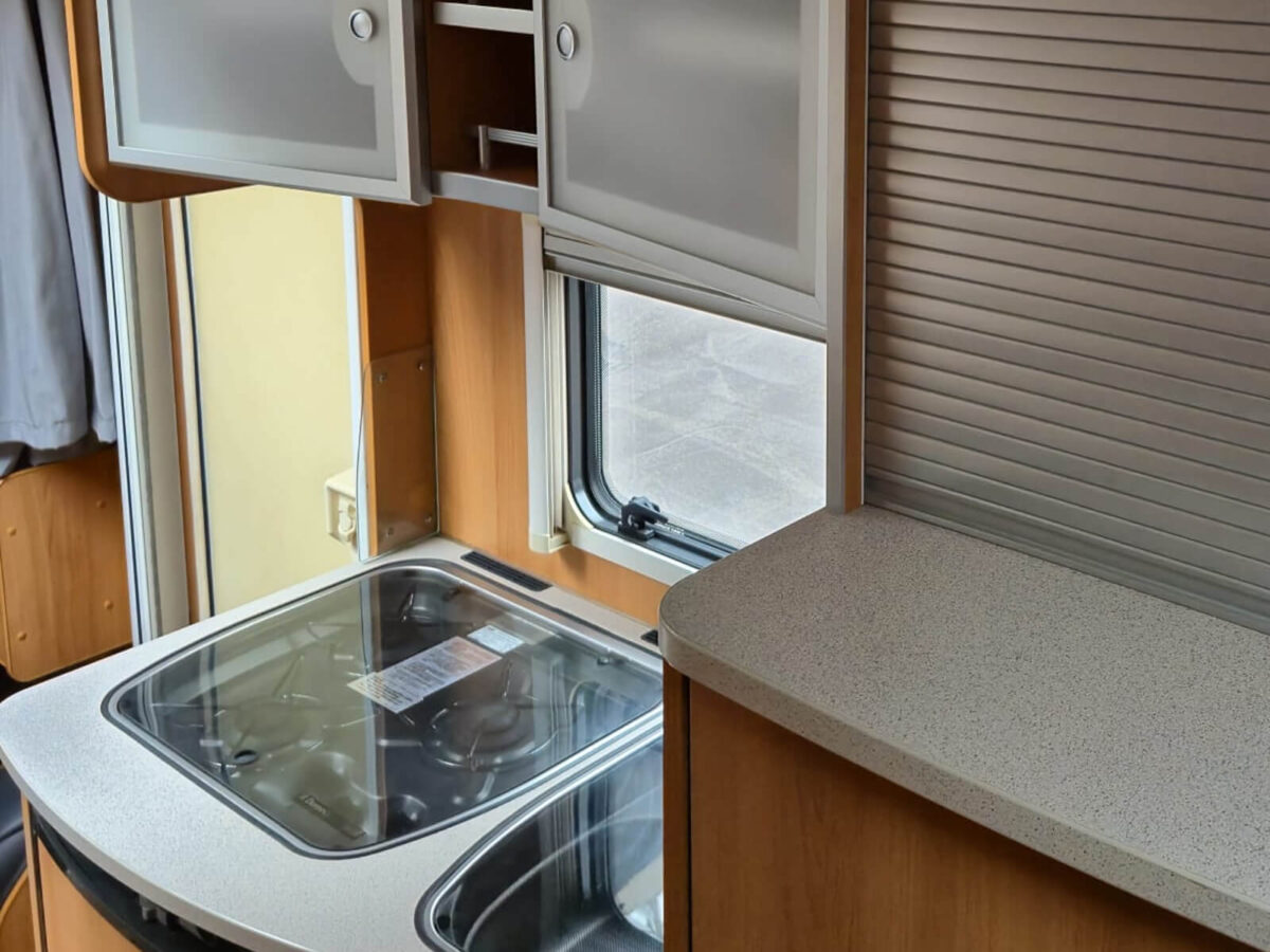 Cucinare in camper è un piacere! La zona cucina è completa di piano cottura a 3 fuochi, lavello in acciaio inox e un frigorifero capiente da 142L. Puoi preparare colazioni panoramiche e cene romantiche, con tutto ciò che ti serve sempre a portata di mano.